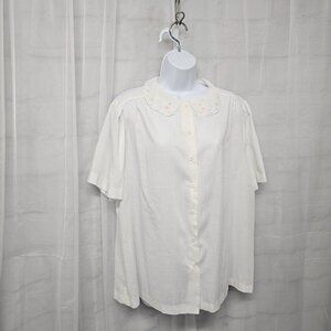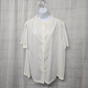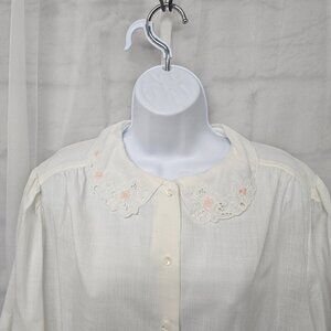 Vintage Ms. Russ Off White Coquette Blouse Retro Dainty Sheer XL