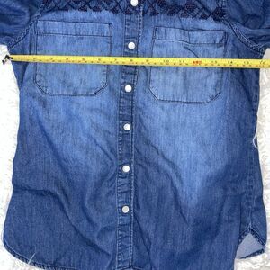 Vintage Mudd Denim And Lace Button Down Shirt Pearl Snap Y2K Size Small