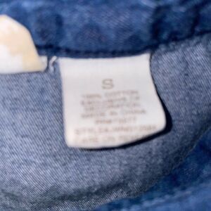 This vintage Mudd denim and lace button-down shirt is a rare find for any fashion enthusiast. The pearl snap closure and long sleeves make it perfect for any occasion. The shirt is made of 100% cotton and features a beautiful blue color that will complement any outfit.