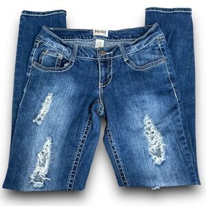 Vintage Mudd Medium Wash Distressed Holes Skinny Straight Jeans Women’s Size 7
