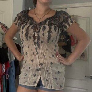 Vintage Mudd Sheer Short Sleeve Paisley Print Button Up