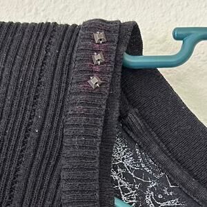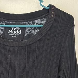 Mudd Jeans Vintage Y2K 90s 2000s Ribbed knit Long sleeve Top Shirt Sweater Knit Scoop neck Studded Black top Grunge Indie sleaze Boho Casual Stretchy Fitted Lightweight Coquette Fairycore fairy Bella Swan Twilight Vampire diaries long fitted tunic sweater Y2K 2000s gothic grunge Emo 🖤