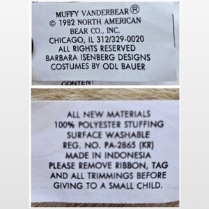 Vintage Muffy VanderBear retired teddy bear plush in blue checkered dress. Perfect for collectors or as a gift!
