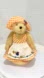 Adorable teddy bear in a plaid dress and matching hat. Features a charming embroidered apron.