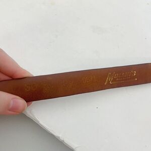 - Condition: There is some scuffing near the holes (second to last pic) and some minor tarnishing to the brass buckle (last pic).