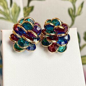Vintage Multi-Color Rhinestone Clip On Earrings