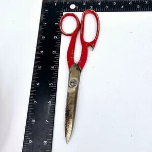 Vintage Multi Purpose Kitchen Shears Cutlery Red Handle Scissors Opener 8"