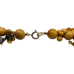 Vintage Multi Strand Beaded Necklace Marbled Yellow Orange Moonglow Lucite 18" Retro