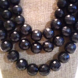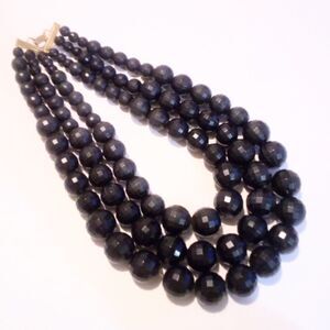 Vintage Multi Strand Chunky Black Faceted Graduated Plastic Bead Necklace