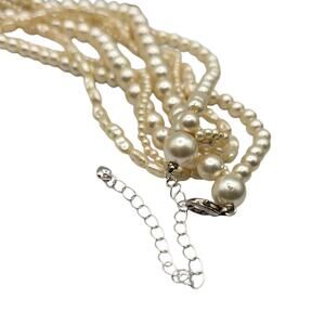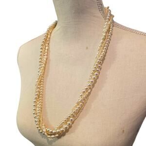 Vintage Multi Strand Faux Pearl Necklace Braided Layered Cream Gold Tone 18-20”