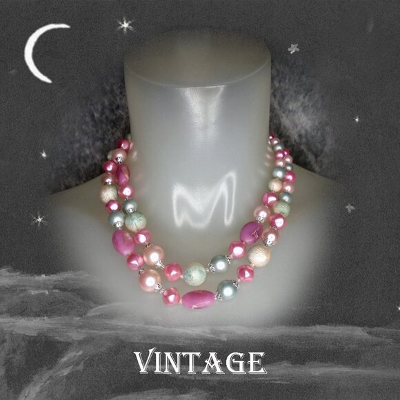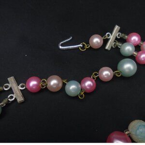 Vintage Multi Strand Necklace, Pink & Aqua Blue Pastel Beads Beaded MultiStrand