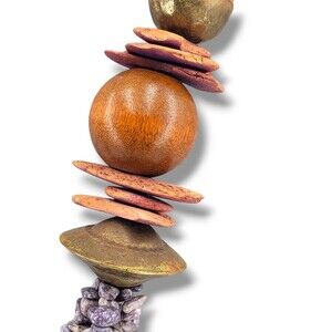Vintage Multi Strand Purple Chip Large Chunky Wood Brass Necklace Boho Statement