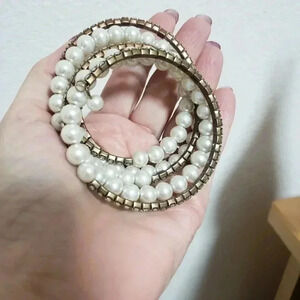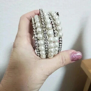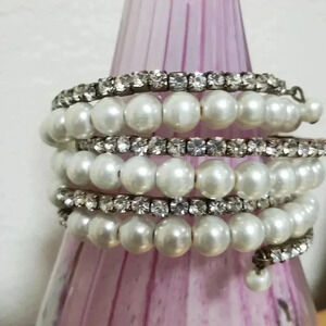 Vintage Multi Strand Rhinestone and Faux Pearl Bracelet