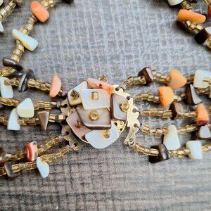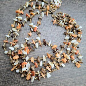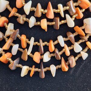 Vintage Multi Strand Stone Necklace - Brown Orange Cream Colors. It looks like some jasper and other semi-precious stones and maybe some shells.