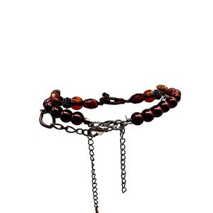 Vintage Multi-Layer Brown Beaded Necklace & Bangle Set Boho Chic Amber N62