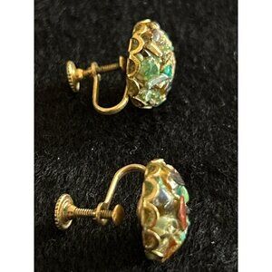 Vintage Multi-Stone Screw Back Earrings Gold-Tone Mid-Century Style Round Shape