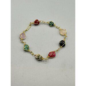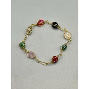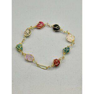 This bracelet features a wire-wrapped design with colorful stones, offering a unique and stylish accessory for any wardrobe. Its delicate craftsmanship and vintage allure make it an elegant choice for those who appreciate timeless jewelry pieces.