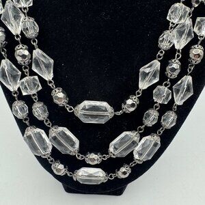 Vintage Multi-Strand Clear Acrylic Bead Necklace With Black Chain Adjustable