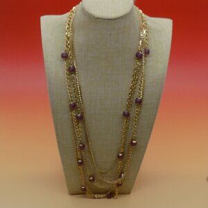 Vintage Multi-Strand Necklace Layered Etruscan Revival Gold-tone Purple Beads