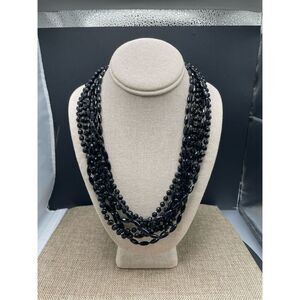 Vintage Multi Strand Plastic Black Beaded Necklace Retro Grandma