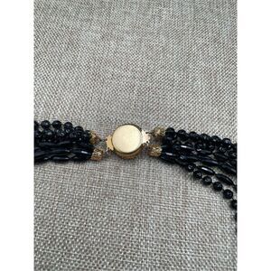 Vintage Multistrand Black faceted beaded necklace. Different size beads.
