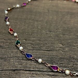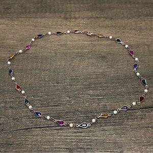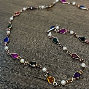 Vintage necklace featuring vibrant multicolor jewels. Perfect for adding a pop of color to any outfit.
