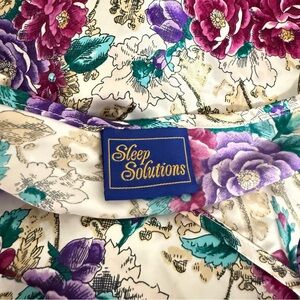Charming floral chemise with spaghetti straps from Sleep Solutions. 90s vintage. Made in USA. Paper Tag. Soft and comfortable fabric. Slits up both sides. Ideal for lounging. Or going out! Size medium. Preowned. Gently worn. Good condition.
