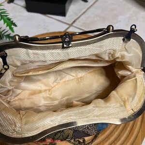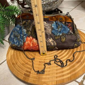 Vintage Multicolor Women’s Clutch Hand Beaded Floral Bronze Accent Purse.