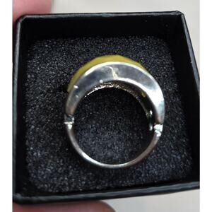 Vintage Multifaceted Yellow Glass Silver Toned Ring Size 6.5