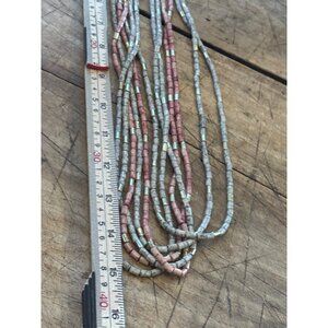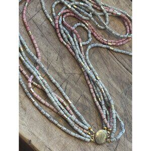 Vintage Multistrand Beaded Necklace With Pink & Gray Tube Beads Gold-Tone Accent