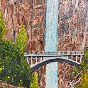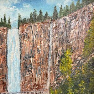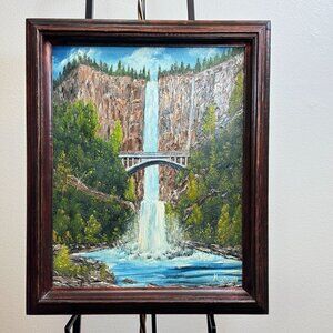 Original 3D acrylic painting of Multnomah Falls by artist Masingill, capturing the breathtaking beauty of this iconic landmark. Perfect for art enthusiasts and collectors of vintage decor. Enhance your space with this unique piece.