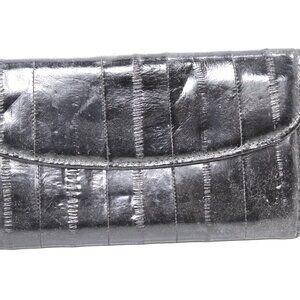 Vintage Mundi Genuine Black Soft EEL Skin Leather Wallet Double Snap Opening