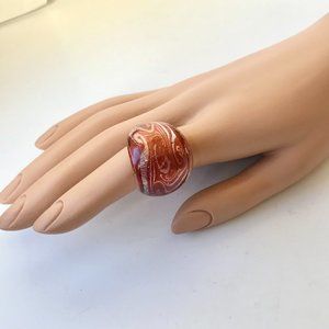 Vintage Murano Art Glass Style Glass Dome Cocktail Ring Size 8 Orange Handmade
