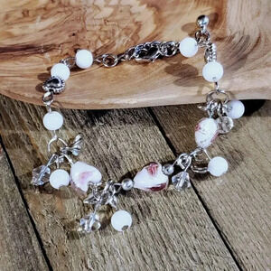 Vintage Murano Glass Beads White Silver Charm Bracelet
