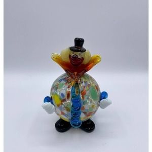 Clown, circus, silly, fat, round, circle, rare, collectible, unique, interesting, collectible, one of a kind, special, glass, handmade, blown, man made, multicolor, colorful. fragile, 7 inch, small, italy, venice, murano, burano, italian, quality