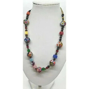 Vintage Murani Italy Millefiori Glass Bead & Art Glass Necklace Venetian.