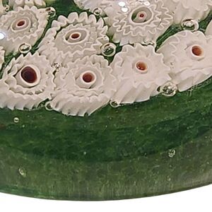 Vintage Murano Millefiori Art Glass Paperweight, White and Green, about 3" wide