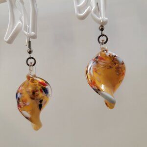 -Yellow glass beaded swirl drops with flecks of red.