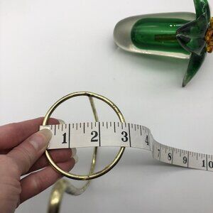3-piece set, this art glass hanging bud vase includes 9 ½” long gold plated hanger, 5 ½” green vein main vase and 3” yellow glass stem