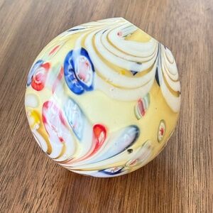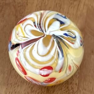 Vintage Murano Style Art Glass Swirl Millefiori Blue Red Yellow 4” Paperweight