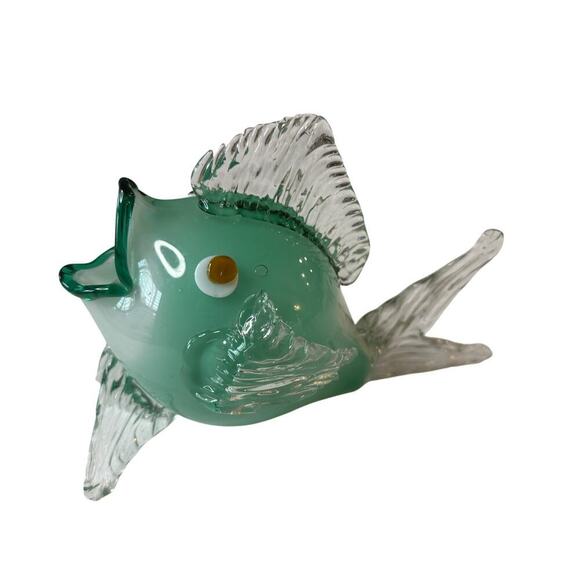 Vintage Murano Style Glass Fish Figurine Green Clear Hand Blown Sculpture Art