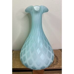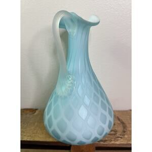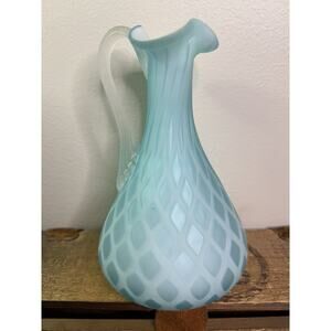 Vintage Murano Venetian Blue White Cased Satin Glass Diamond Quit Cruet Labeled