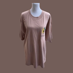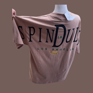 Soft-washed and sun-faded, this vintage Murina tee features a bold back graphic reading “Spin Dulys Los Angeles” with a palm tree crest on the front chest. Made in the USA from pre-shrunk 100% cotton, it has a ribbed crew neckline, breathable fabric, and an easy straight-hem silhouette. A curious slice of Los Angeles nostalgia—quietly iconic and made to last.