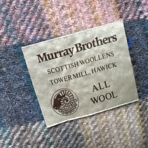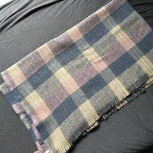 Vintage Murray Brothers Scottish Woolens Plaid Wool Blanket 31” X 56” Blue Pink