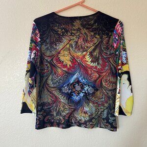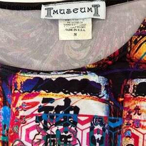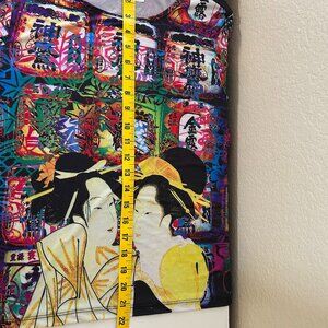 Vintage Museum Asian Print Top Size M Geisha Shirt Stretch 3/4 Sleeve Made In US