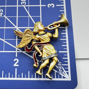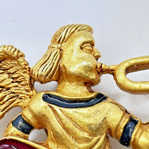 Vintage Museum of American Folk Art Angel Trumpeting Brooch Gold Tone Enamel