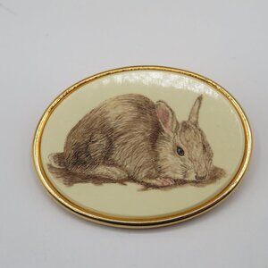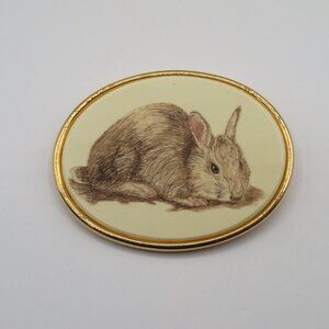 Vintage Museum of Fine Arts Scrimshaw Bunny Rabbit Brooch. Approximately 1.75 inches in size.