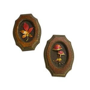 MCM Mid Century Modern Wall Hangings Mushrooms and Leaf