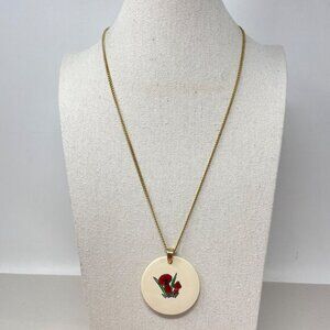Vintage Mushroom Pendant Necklace Groovy 70s Long Length Chain Gold-Tone