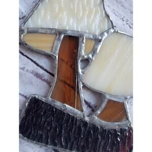 Vintage Mushrooms Stained Metal Glass Sun Catcher has some wear no suction cup to hang.